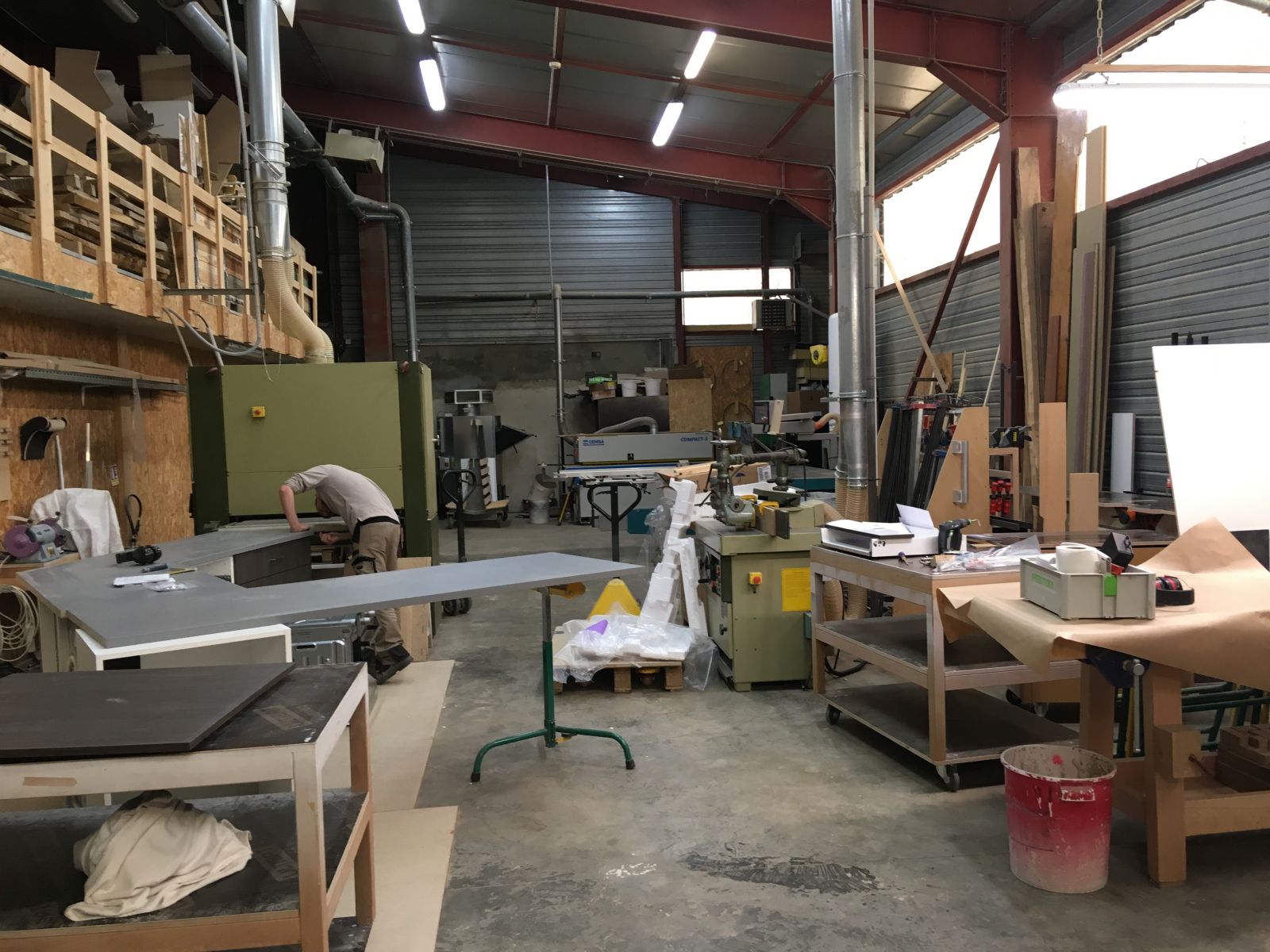 Cette visite a permis à Fibois 42 de découvrir l'atelier équipé de toutes les machines nécessaires pour effectuer la fabrication complète de la partie bois des projets.